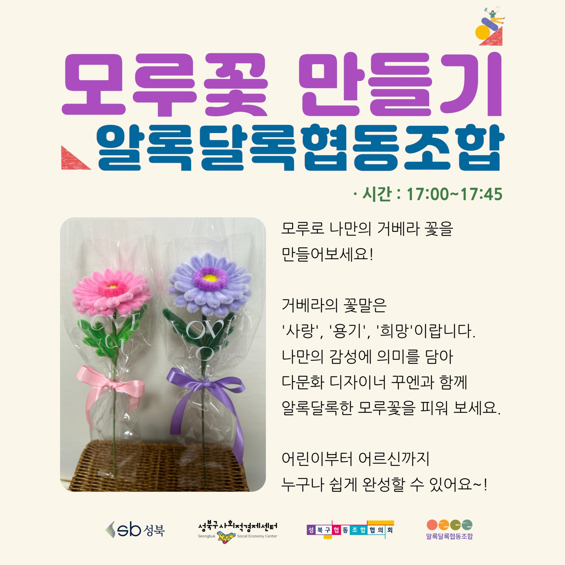 17:00~17:45 : 모루꽃 만들기 | 알록달록협동조합