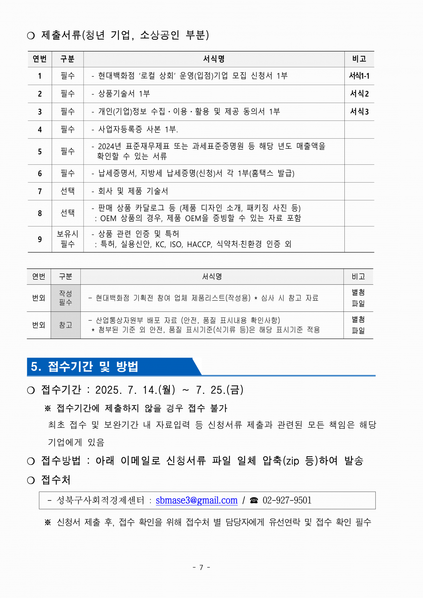 ※ 신청서 제출 후 접수 확인을 위해 접수처 별 담당자에게 유선연락 및 접수 확인 필수