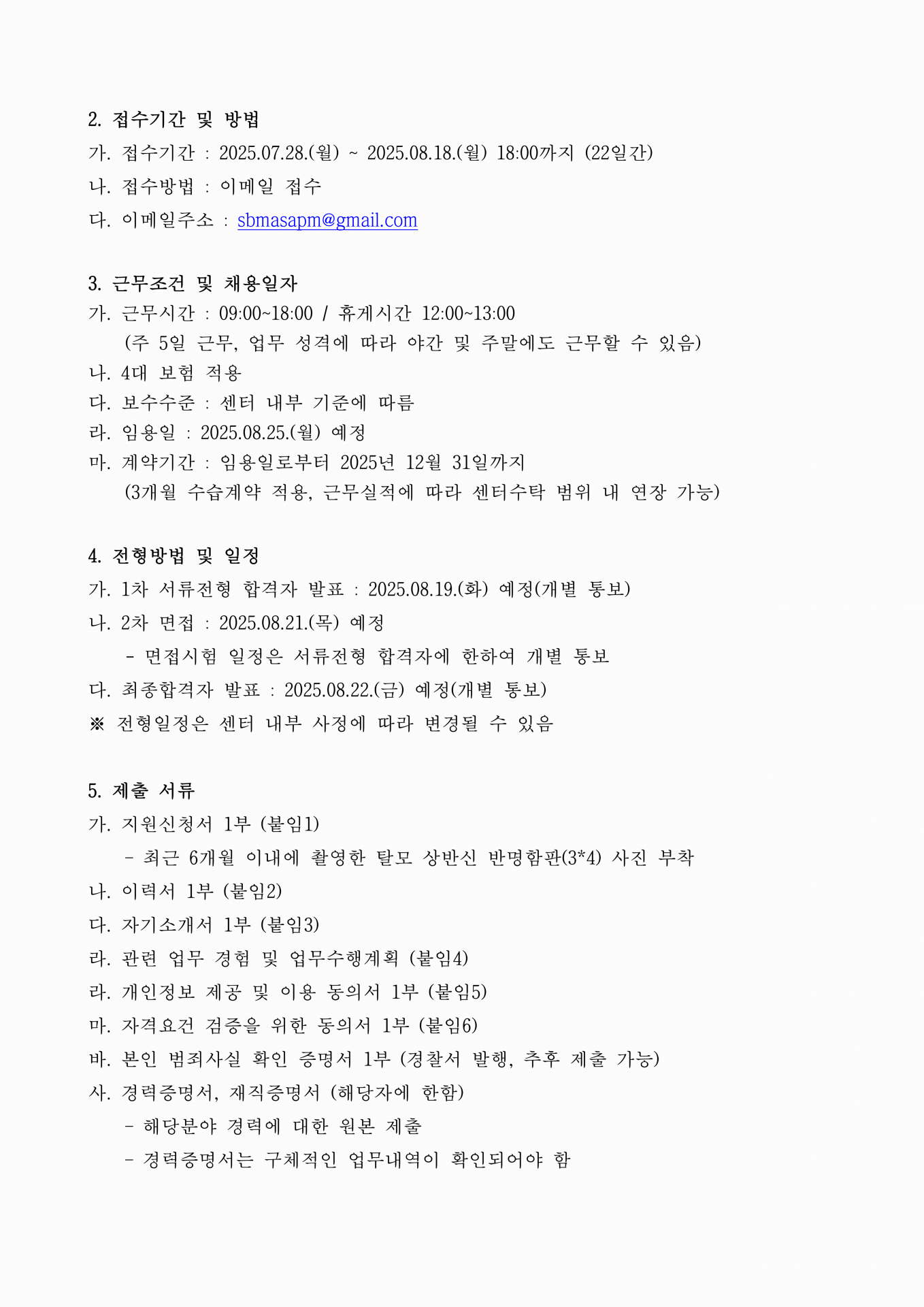 공고 내용은 사정에 의하여 변경될 수 있습니다.