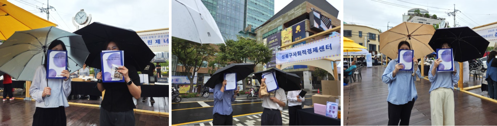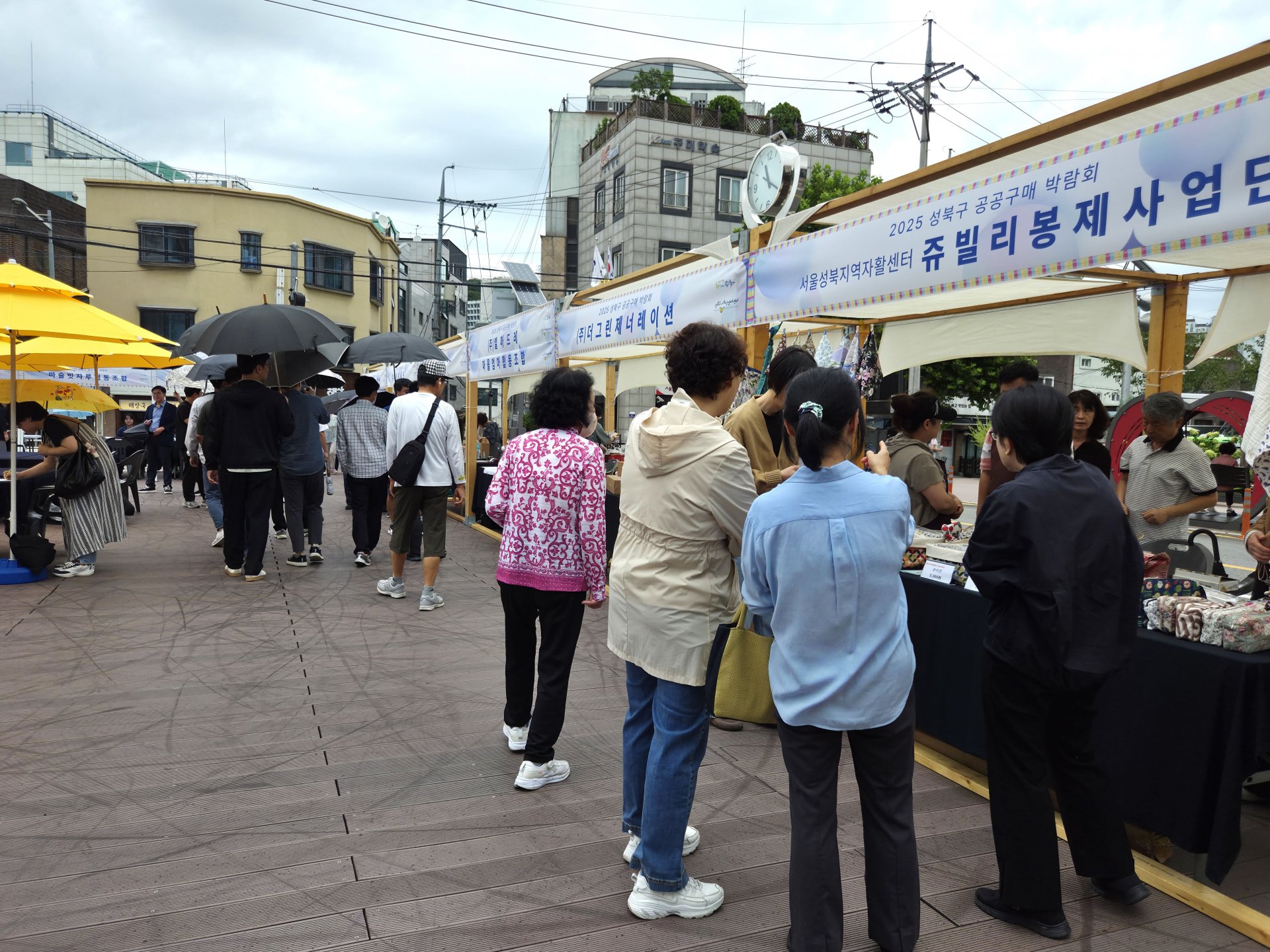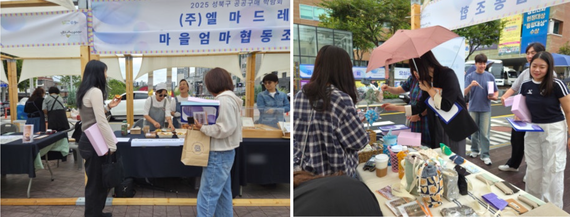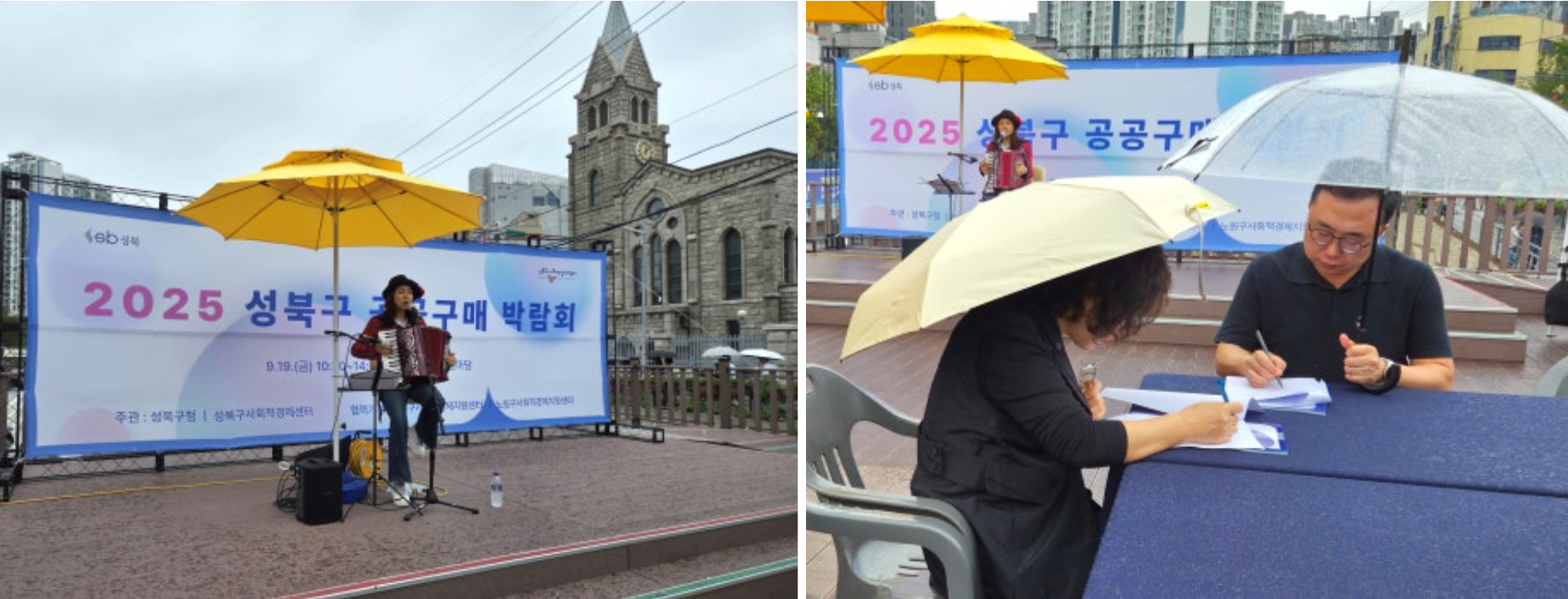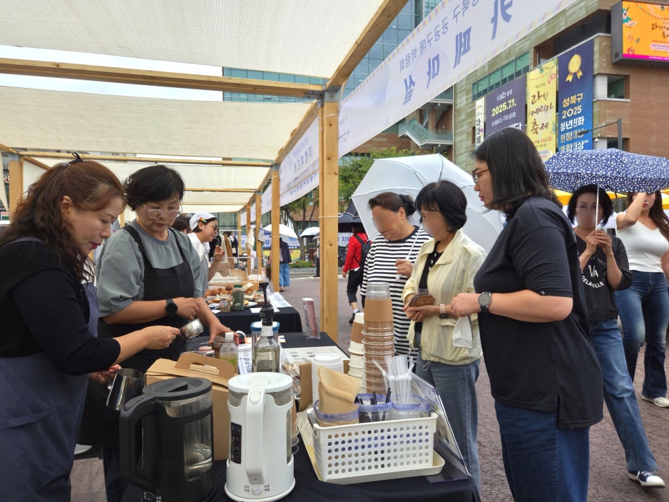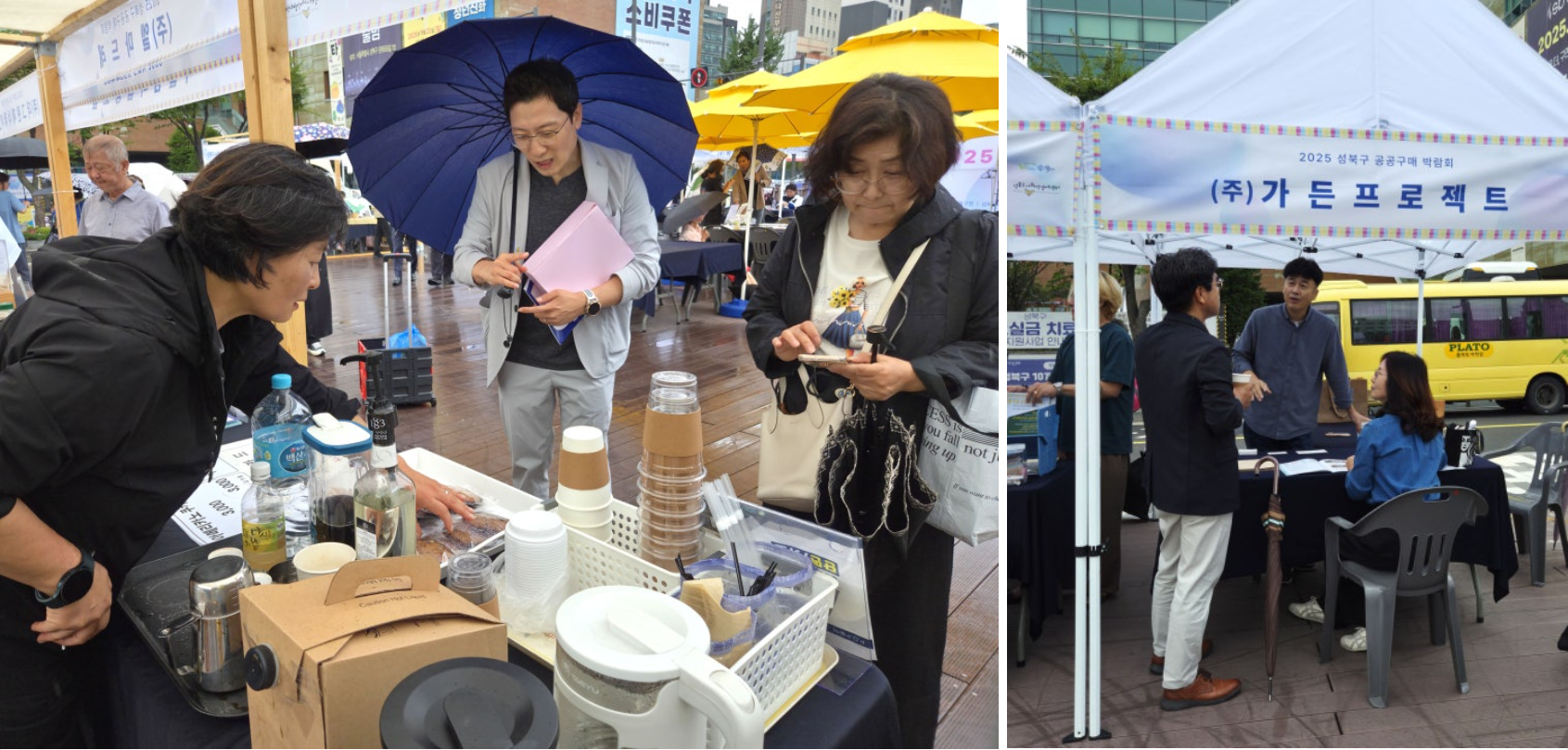 가는 빗줄기가 오락가락하는 궂은 날씨에도 불구하고 2025 성북구 공공구매 박람회는 차분하면서도 알찬 분위기로 진행되었습니다. 참여 기업들은 공공구매 담당자들을 직접 만나 소비자의 요구사항을 자세히 파악할 수 있었고, 주민들은 먹거리 시식과 수공예품 구입은 물론 체험과 공연까지 즐길 수 있었습니다.