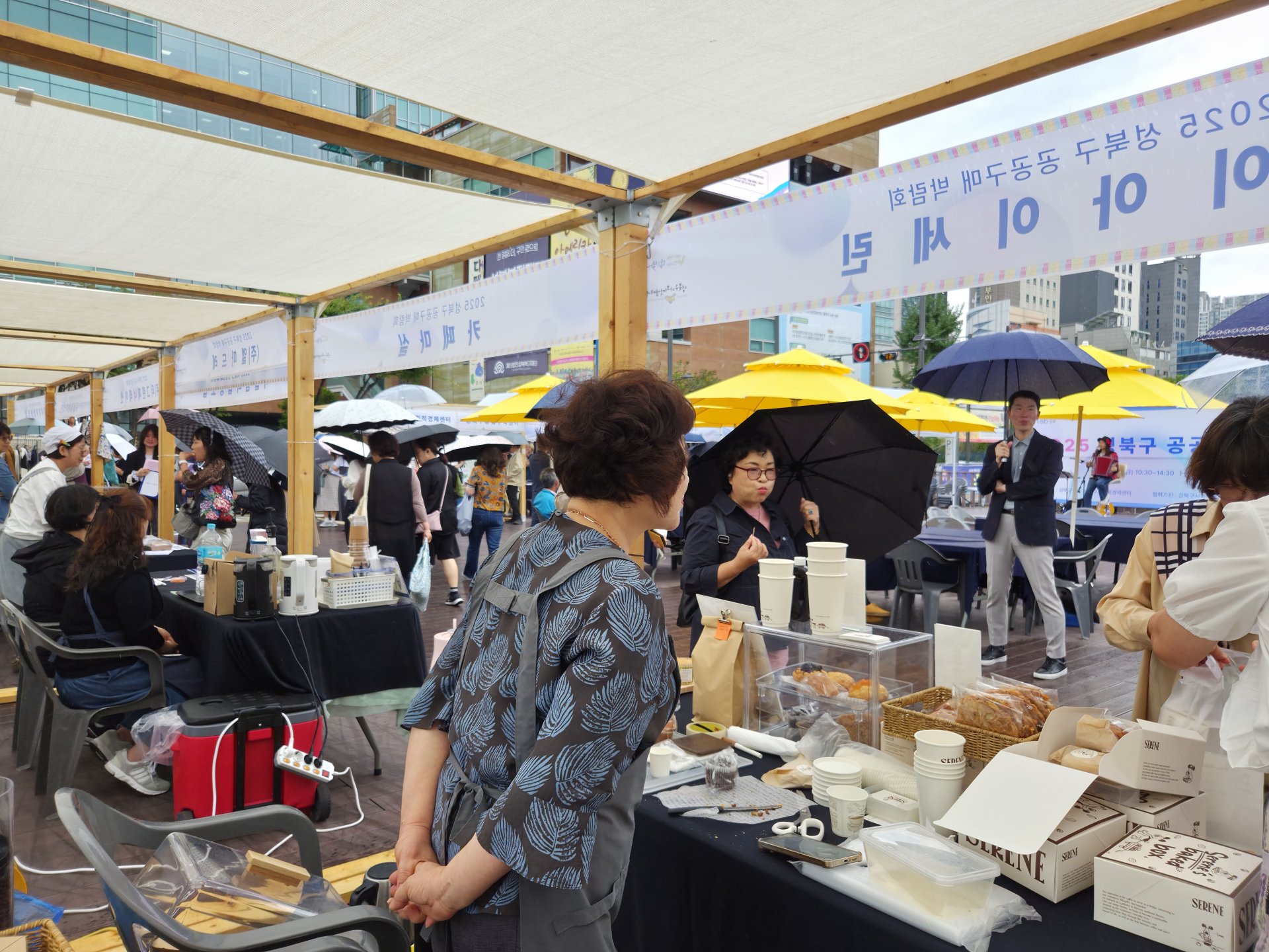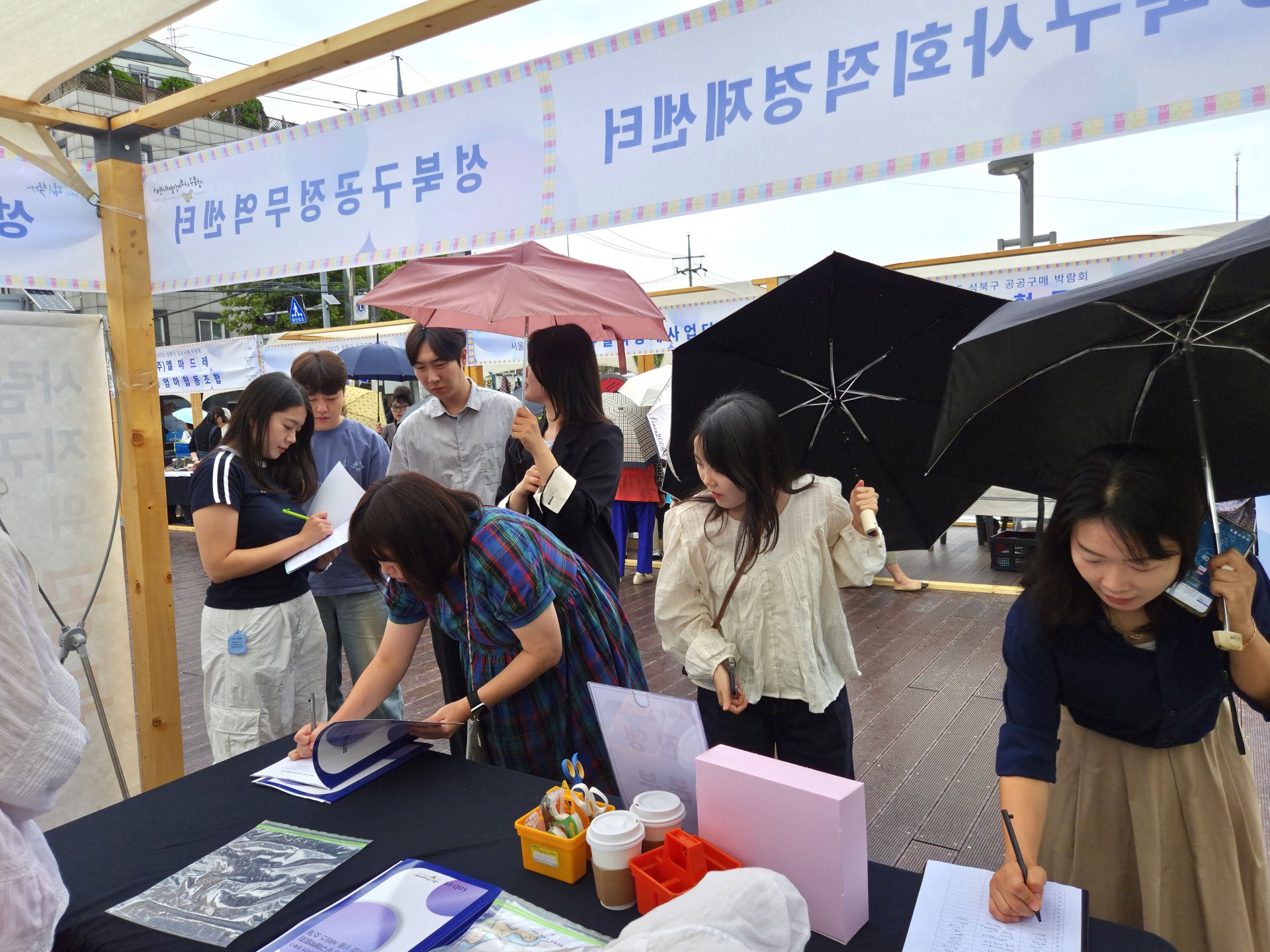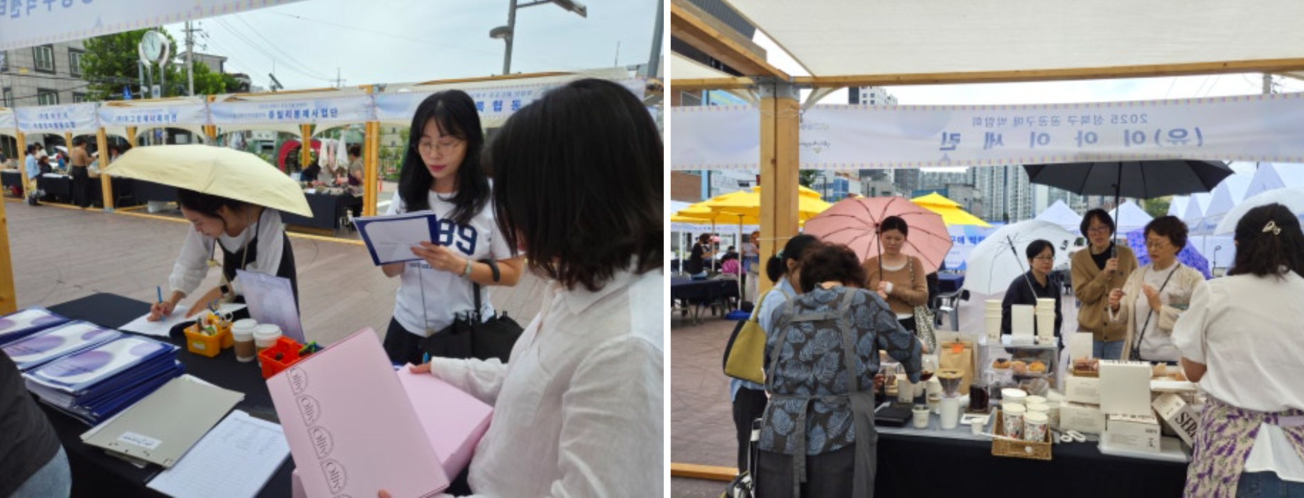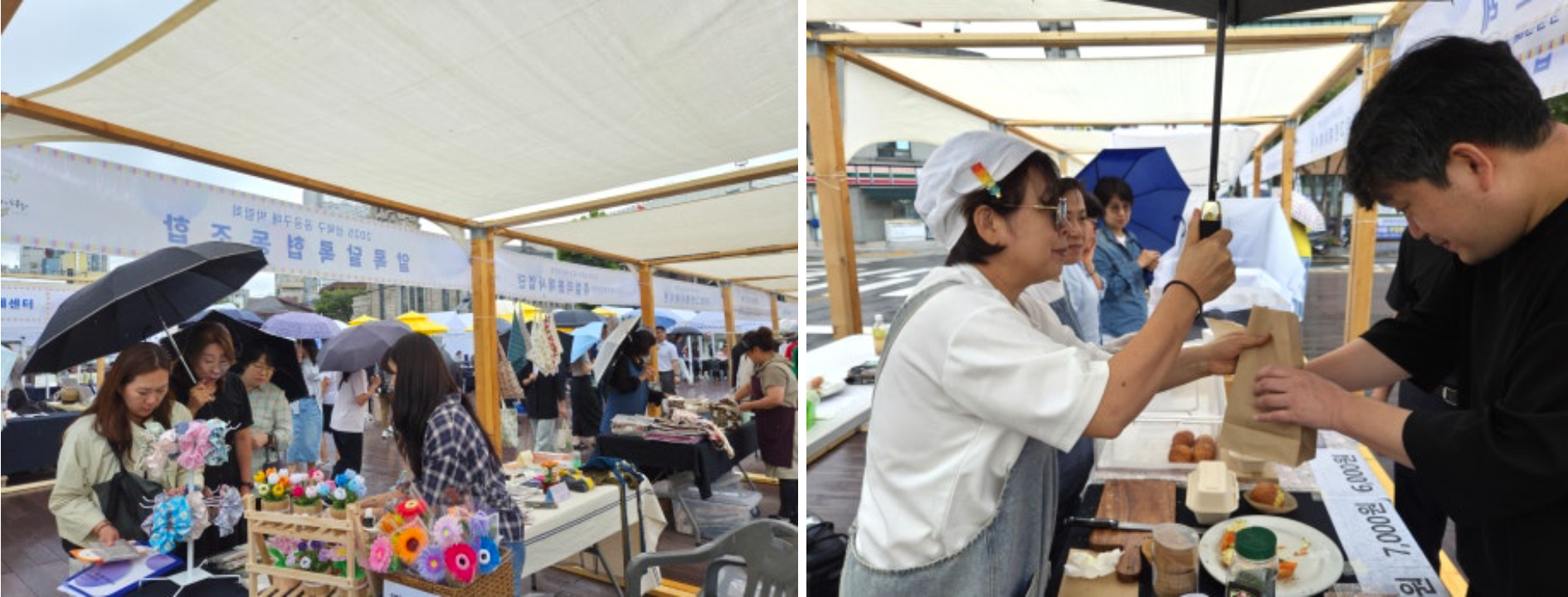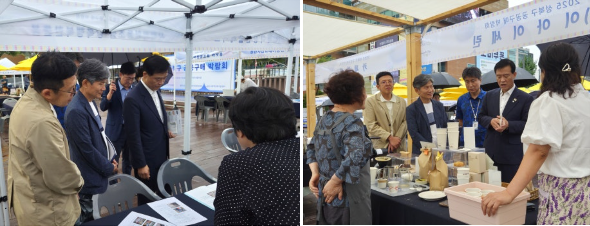 가는 빗줄기가 오락가락하는 궂은 날씨에도 불구하고 2025 성북구 공공구매 박람회는 차분하면서도 알찬 분위기로 진행되었습니다. 참여 기업들은 공공구매 담당자들을 직접 만나 소비자의 요구사항을 자세히 파악할 수 있었고, 주민들은 먹거리 시식과 수공예품 구입은 물론 체험과 공연까지 즐길 수 있었습니다.