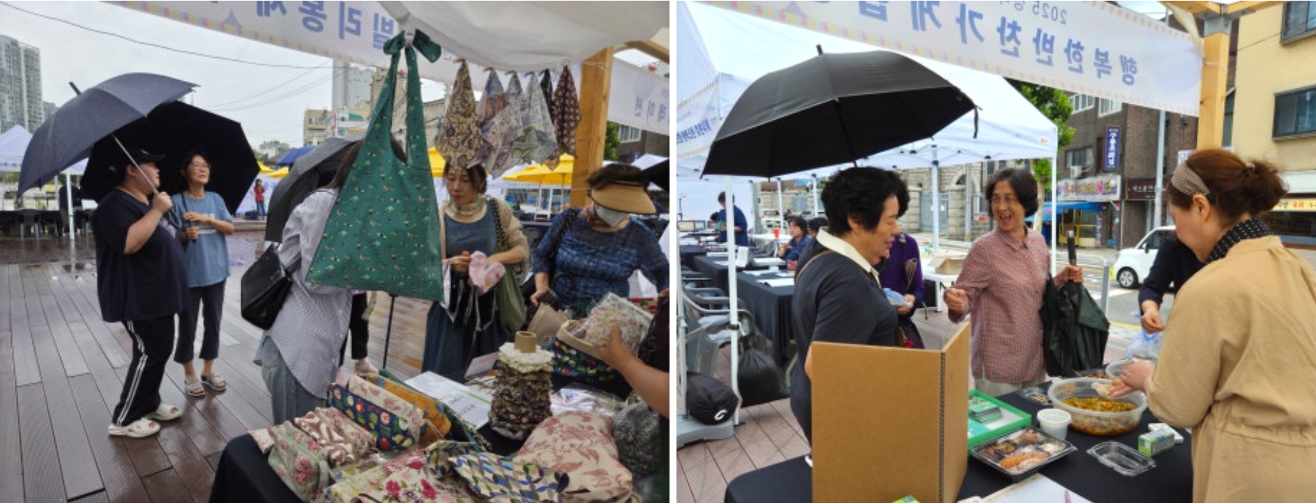 사람들의 발길을 먼저 붙잡은 건 역시 수공예품과 먹거리 판매 부스였습니다. 먹거리 부스에는 다양한 시식이 준비되어 있어 지나가던 주민들도 발걸음을 멈추고 맛보며 이것저것 묻는 모습이 자주 보였습니다. 맛을 본 뒤 구매로 이어지는 장면도 계속 이어졌습니다.