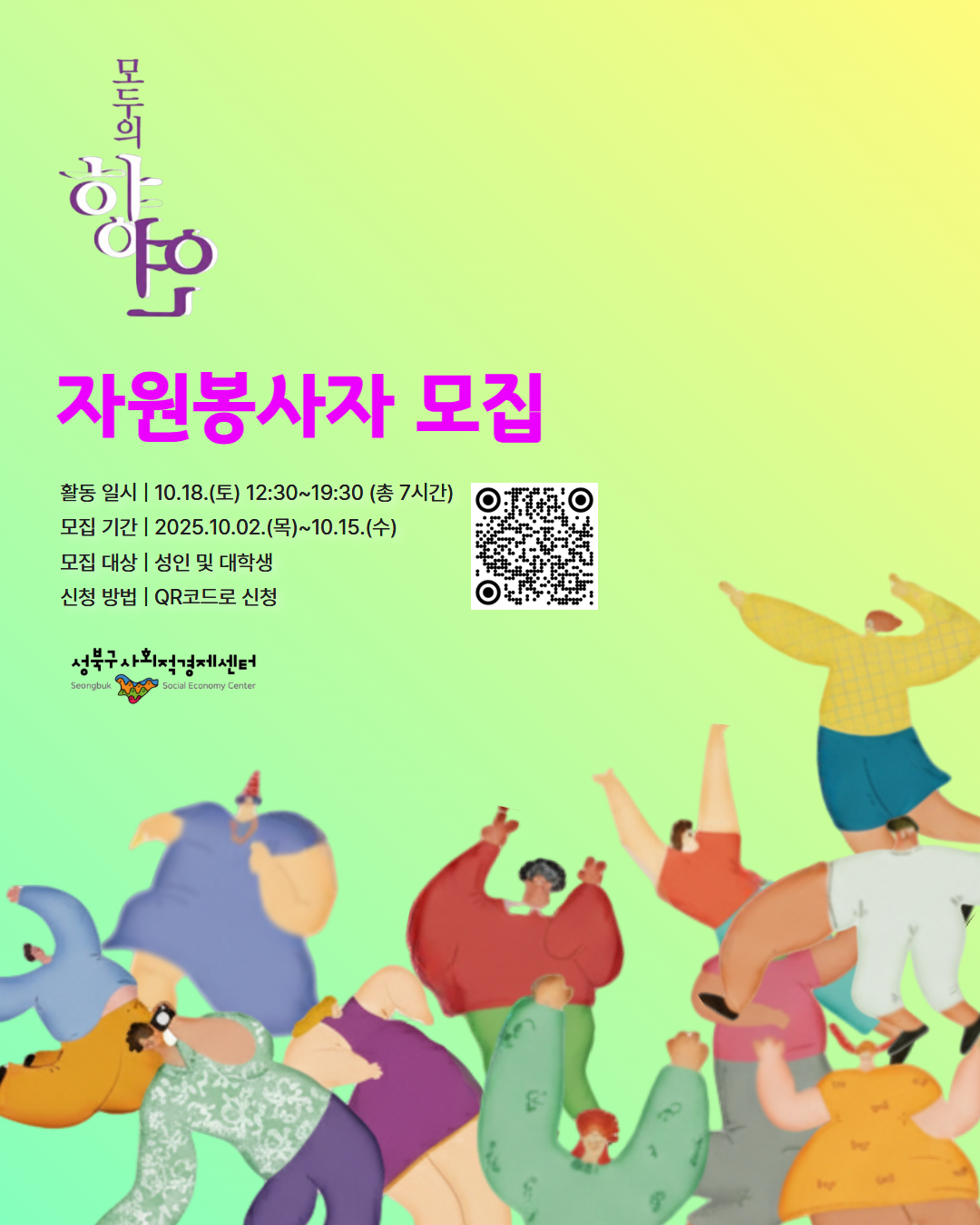 2025 성북구 사회적경제 한마당 「모두의 향연」에 자원봉사자로 함께할 주민분들을 모집합니다.