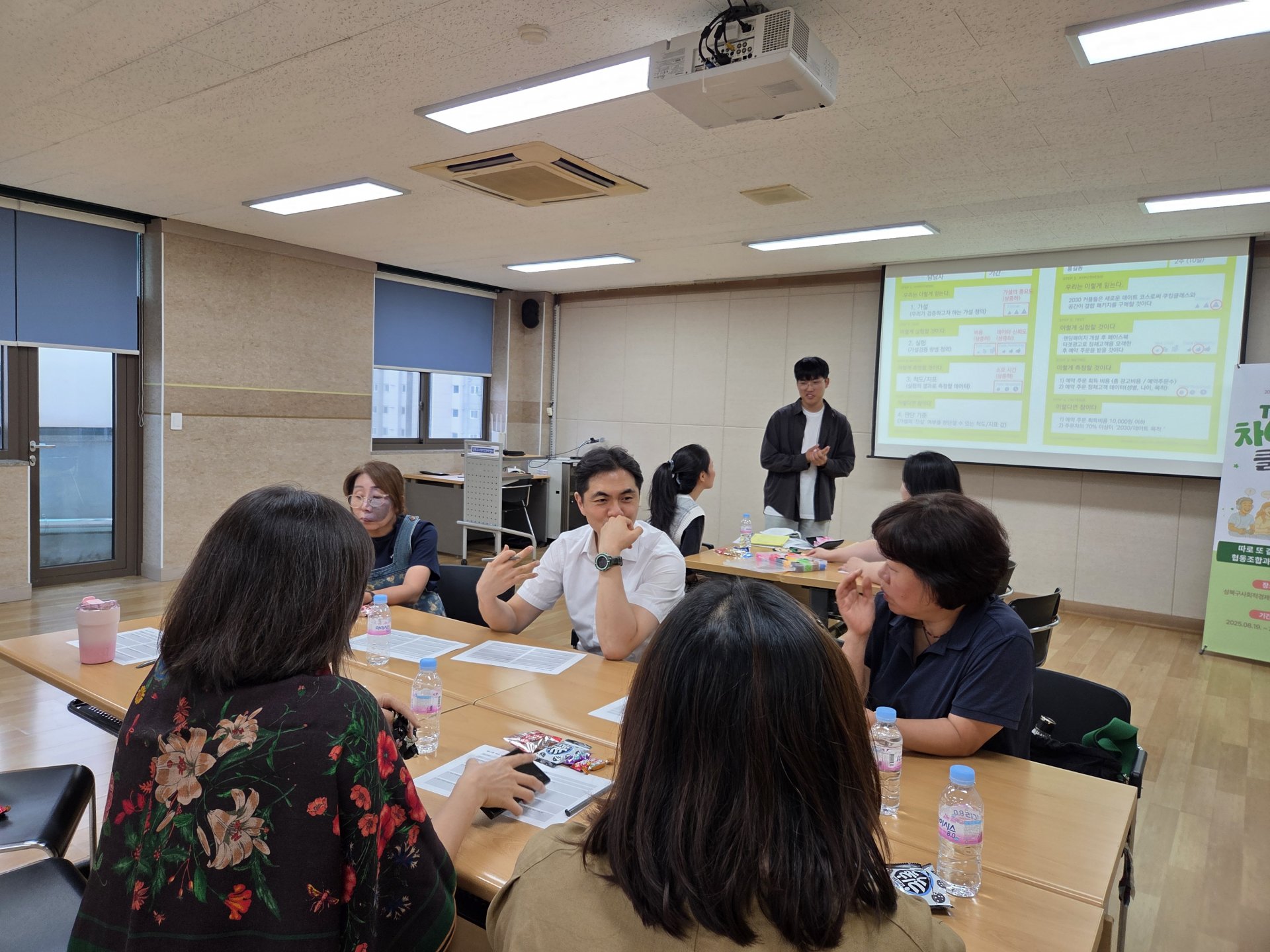 강의가 끝난 뒤에는 곧바로 모둠별 활동이 이어졌습니다. 방금 배운 내용을 각자의 아이템과 부스 운영 계획에 어떻게 적용할지 구체적으로 풀어보는 시간이었죠.