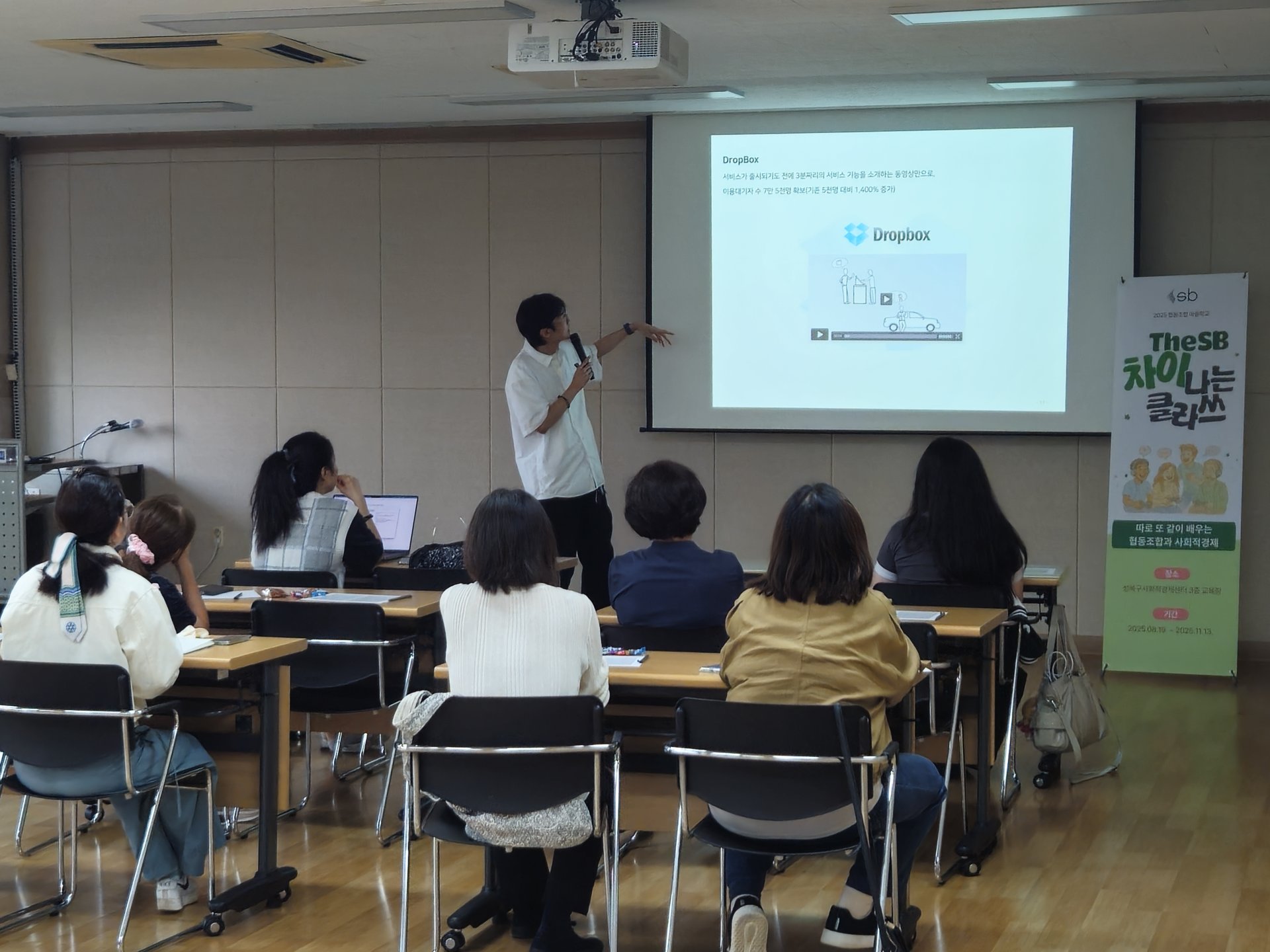 협동조합 마을학교 13강은 4강에서 인상적인 강의를 선보였던 (주)퍼센트 최승연 이사께서 사업 아이디어 검증에 대해 강의해 주셨습니다. 지난 번에 다뤘던 ‘고객의 문제를 발굴하는 법’에서 한 걸음 더 나아가 ‘내 사업 아이디어가 실제로 고객한테도 먹힐까?’를 구체적으로 검증하는 방법을 배웠습니다. 곧 열릴 2025 성북구 사회적경제 한마당 「모두의 향연」부스를 준비하고 운영하는데 실질적으로 필요한 내용들이었습니다.