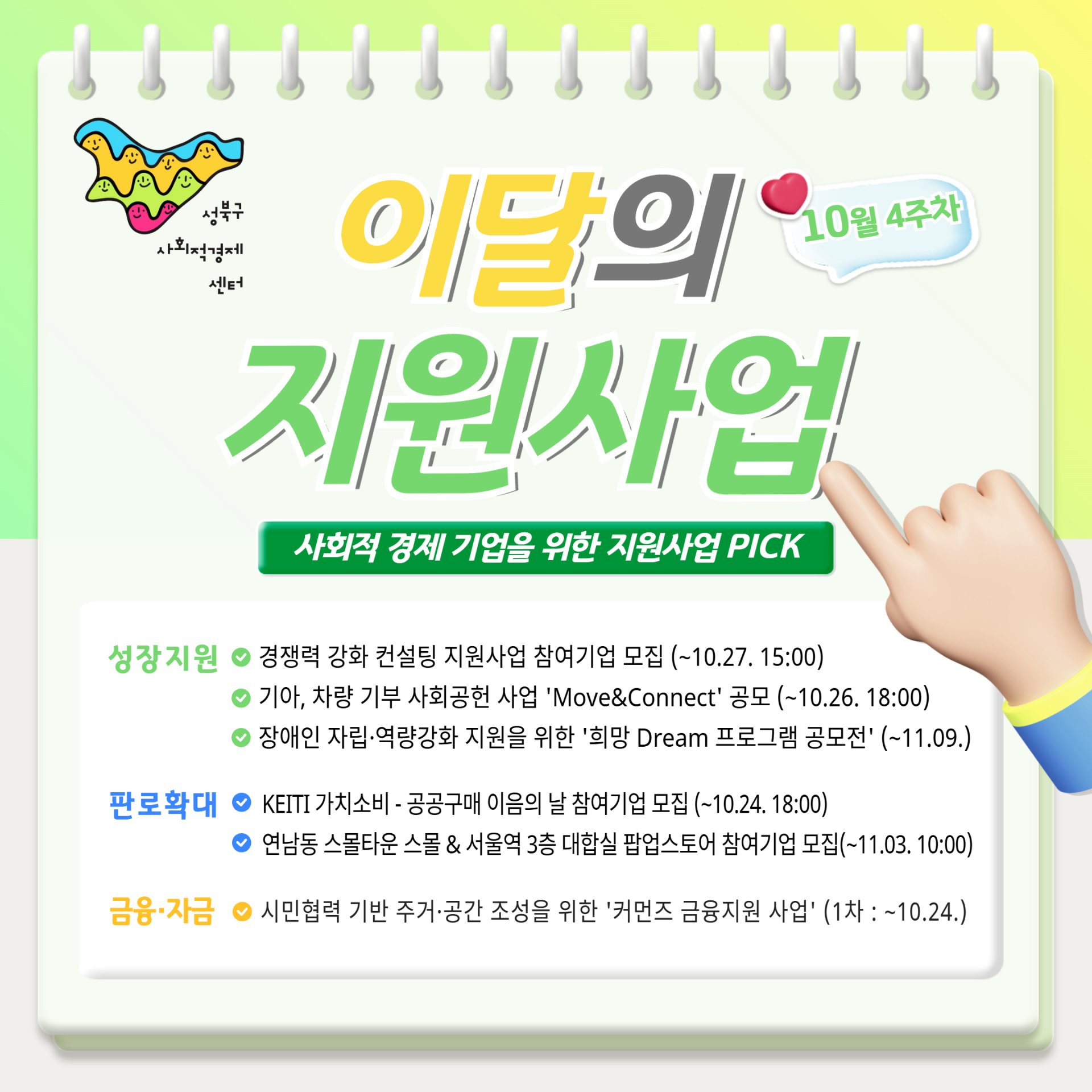 [이달의 지원사업] 10월 4주차 사회적경제 지원사업 PICK