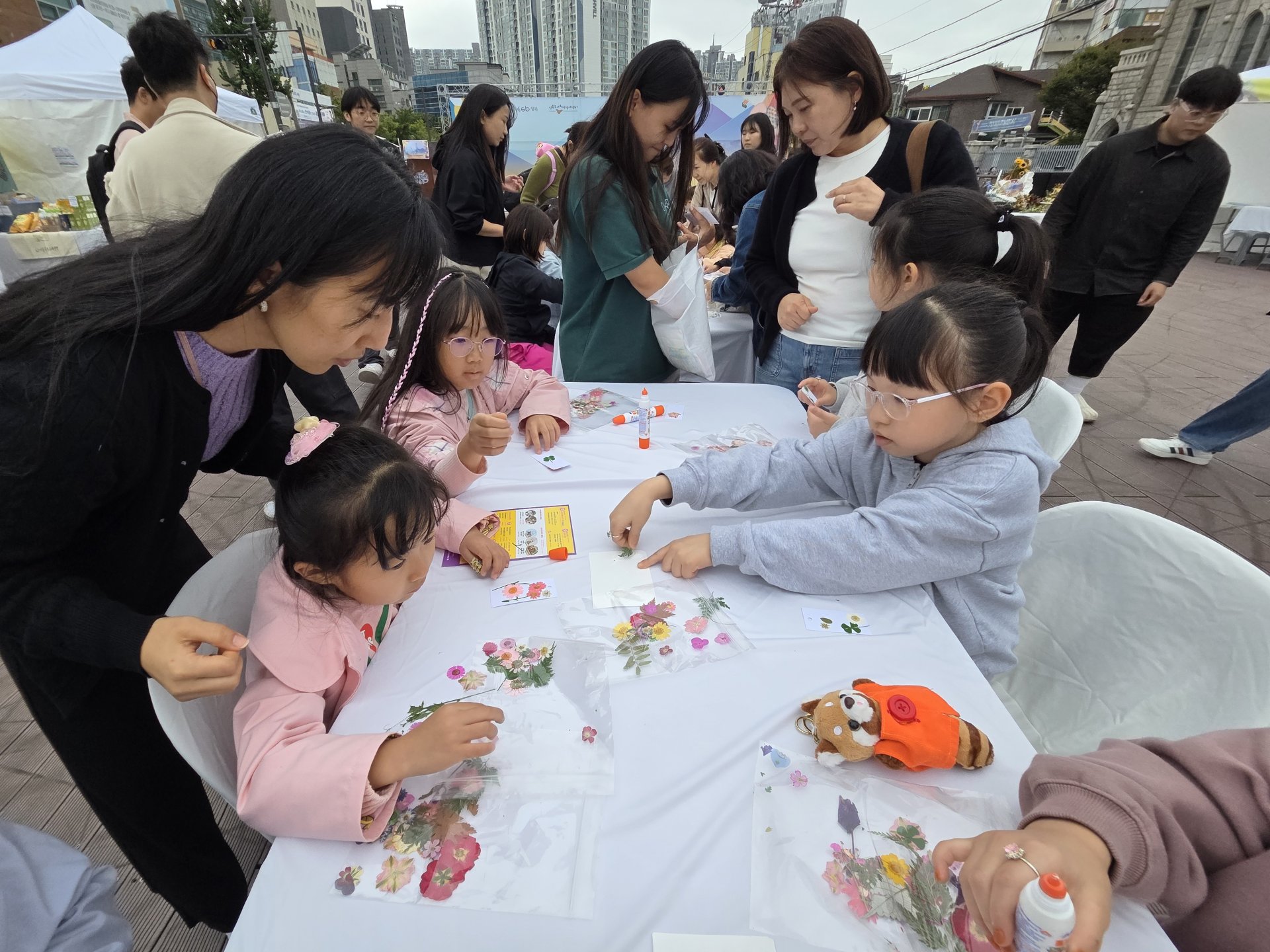 (주)다리메이커는 자연 속 아이돌봄을 포함한 패밀리 워케이션을 운영하고 있는 성북구의 대표 청년기업인데요~ 진행자의 안내에 따라 어린이를 동반한 가족 등 남녀노소가 어우러진 참가자들이 말린 꽃을 골라 붙이며 자연의 감수성이 담긴 책갈피를 만들어 보았답니다.