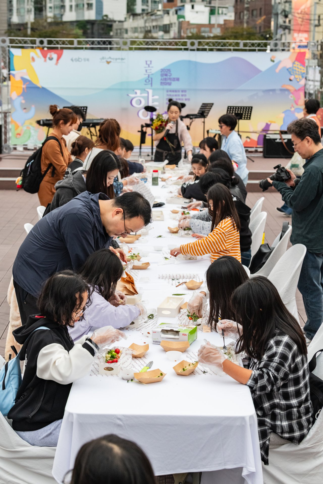 (주)엘마드레는 건강한 외식문화와 지역 돌봄을 위해 먹거리 문화콘텐츠를 기획하고 개발하는 사회적기업입니다. 올해 모두의 향연에서는 채소를 이용해 미니정원을 꾸미는 퍼포먼스형 쿠킹클래스를 선보여 요리하는 기쁨을 느끼고 채소와 한층 친해지는 하루였답니다. 엘 선생님과 함께 어린이부터 어르신까지 채소의 맛과 멋에 푹 빠졌던 시간이었습니다.