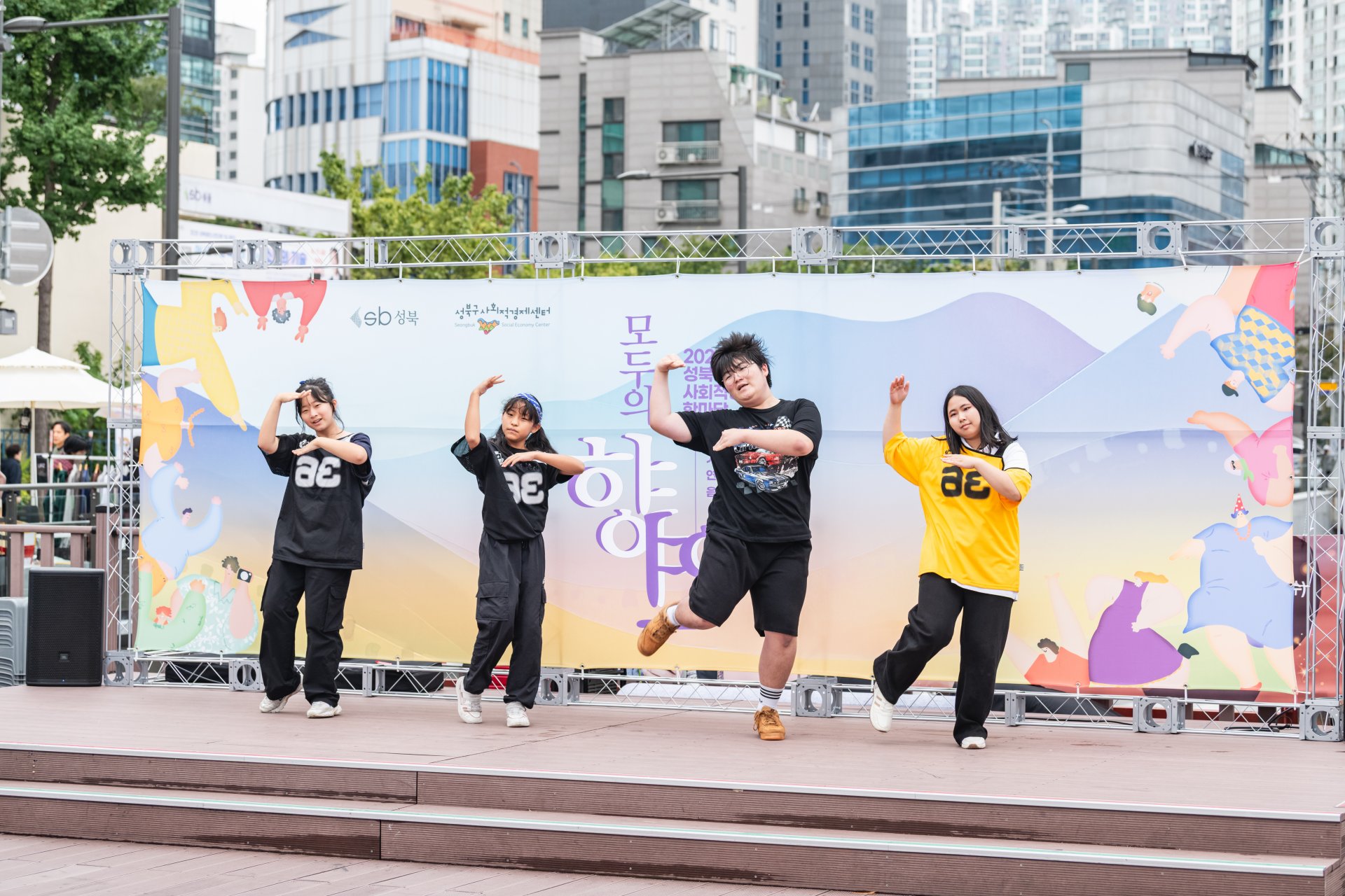 성북구 사회적경제 한마당 「모두의 향연」 ‘여는 무대’는 언제나 특별합니다. 모두가 함께하는 모두의 잔치, 누구에게나 열려 있는 풍성한 ‘무대’로 「모두의 향연」이 시작되니 그냥 열 수 없지요. 「2024 모두의 향연」은 지역의 대학생과 어린이들이 ‘여는무대’를 함께 열어 주었는데요. 올해는 청소년과 대학생, 어르신들이 팀을 이루어 시민 모두가 즐기고 함께하며 그 의미를 되새길 수 있는 무대를 만들기 위해 기획 단계부터 심혈을 기울였습니다. ‘2025 성북구 사회적경제 한마당 공동추진단’ 회의를 거듭하며 아이디어를 모으고 수정·보완하며 구체화하였습니다.