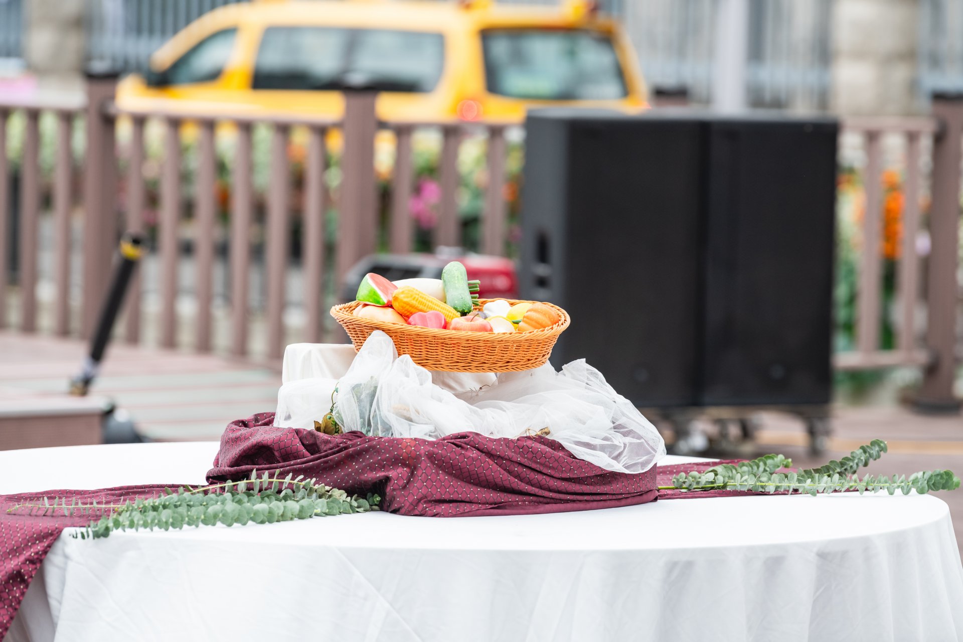 공연은 사회자의 퍼포먼스로 시작되었습니다. 돌멩이 수프용 재료가 담길 바구니를 소개한 사회자는 그 바구니를 메인 테이블에 놓아 줄 주민 분을 모셨는데요. 손을 든 용감한 지원자는 어린이였습니다.