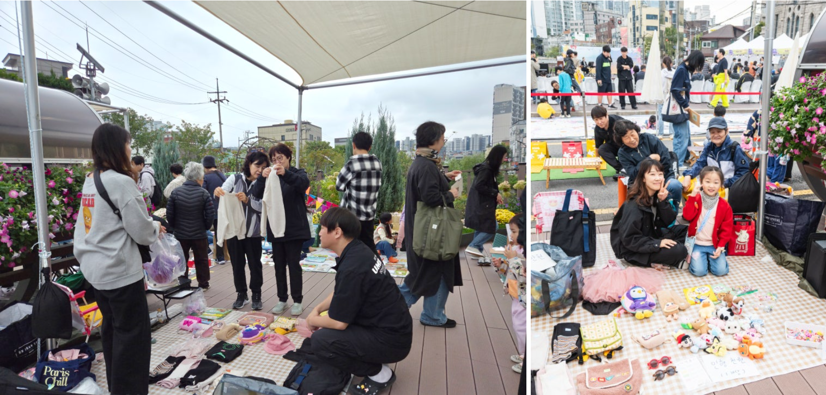 아이들은 아주 진지하게 판매에 나섰습니다. 손님으로 찾아온 주민들도 아이들과 자연스럽게 대화를 나누며 흥정하는 재미에 빠졌습니다. 판매 대금으로 어린이들은 다른 플리마켓의 손님이 되기도 했습니다. 그야말로 ‘순환경제’의 의미를 직접 경험하는 자리가 되었답니다.