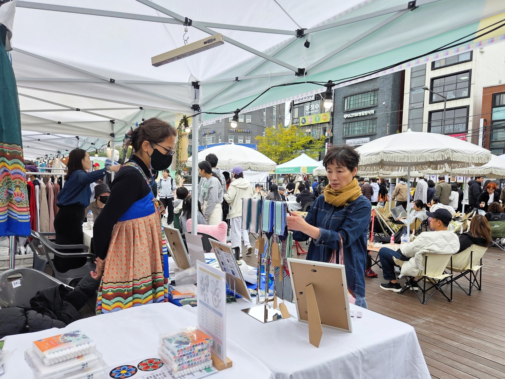 일찍부터 관심을 보여 주신 주민분들 덕분에 정식 개막시간이 꽤 남았지만 많은 부스들은 이미 만원이었습니다. 부스마다 둘러보는 주민분들을 응대하기 바빴습니다. 품목이 다양해 구경하는 재미가 있기 때문인지 부스를 하나하나 꼼꼼히 살펴보는 분들도 계셨습니다.