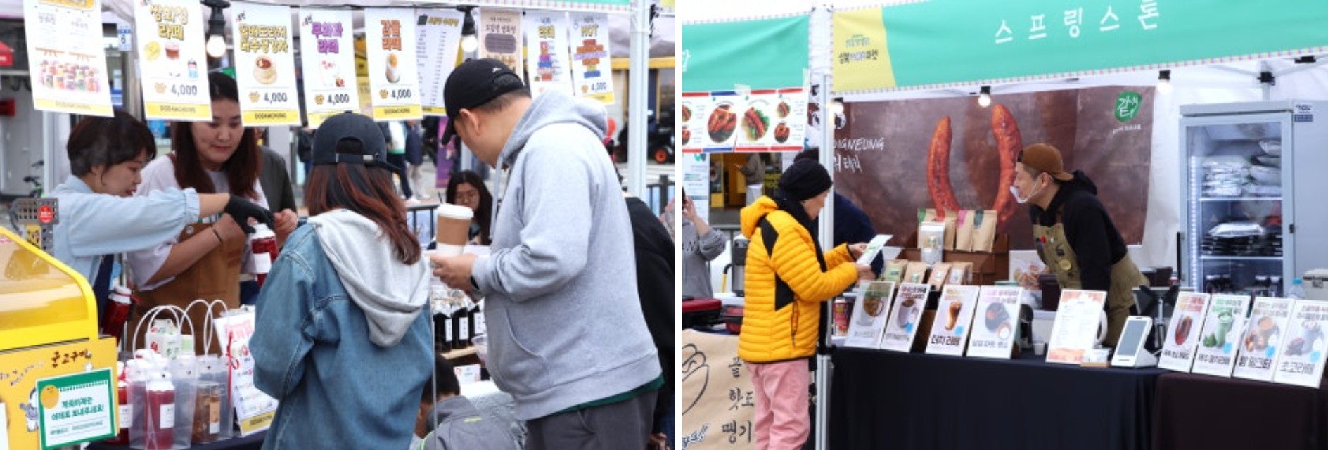 부스를 운영하는 기업인이나 소상공인들도 주민분들과 소통하며 제품과 기업(가게)을 열심히 알렸습니다. 마켓 참여는 홍보의 기회가 될 뿐 아니라 다양한 소비자를 만남으로써 제품도 검증할 수 있는 기회가 되는데요. 어떤 제품이 잘 팔리고 잘 안 팔리는지, 개선점은 무엇인지 방향을 잡아 볼 수 있기 때문입니다. 성북MOA마켓 참여가 성장의 기회가 될 수 있도록 센터에서는 여러 차례의 기획워크숍을 통해 참여 기업(가게)들을 지원해 왔는데요. 앞으로도 참여 기업(가게)의 성장에 필요한 장을 지속적으로 열어 갈 계획입니다.