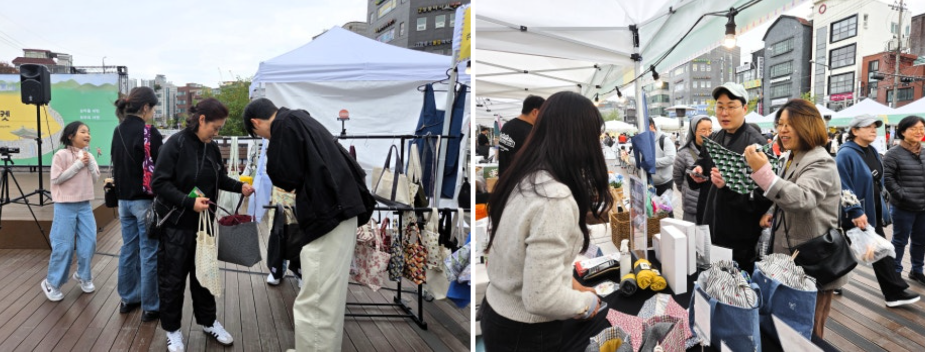 일찍부터 관심을 보여 주신 주민분들 덕분에 정식 개막시간이 꽤 남았지만 많은 부스들은 이미 만원이었습니다. 부스마다 둘러보는 주민분들을 응대하기 바빴습니다. 품목이 다양해 구경하는 재미가 있기 때문인지 부스를 하나하나 꼼꼼히 살펴보는 분들도 계셨습니다.