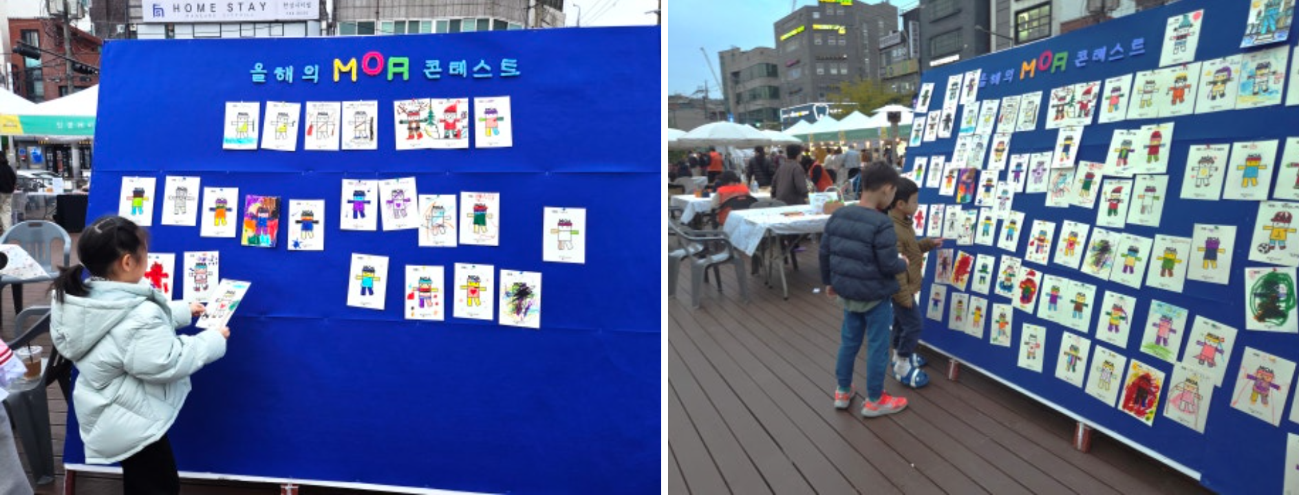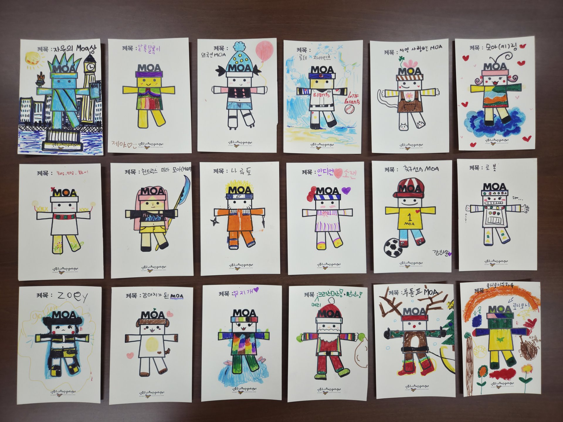 많은 어린이들이 참여해 주셨고, 그 상상력이 하나하나 놀라웠습니다. 텅 빈 MOA가 색을 입고 배경을 가지니 그림마다 한 편의 서사가 뚝딱 완성되는 것 같았습니다.