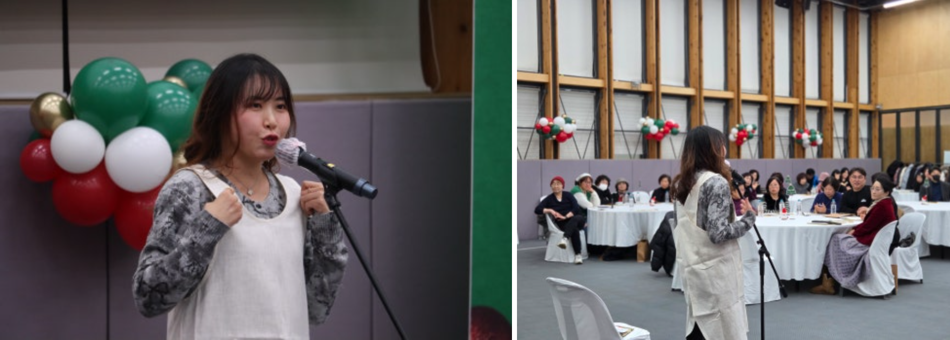 올 한 해 사회적경제 현장에서 애써 온 서로를 응원하기 위해 성사경 시스터즈&보이가 노래와 퍼포먼스를 결합한 멋진 무대를 선보였습니다. 네레이션에 이어 댄스가 어우러진 공연이 한 해의 수고를 유쾌하게 풀어내며 공감을 얻었습니다. 예상을 뛰어넘는 에너지 넘치는 무대에 객석에서는 웃음과 박수가 이어지며 현장을 후끈 달궜습니다.