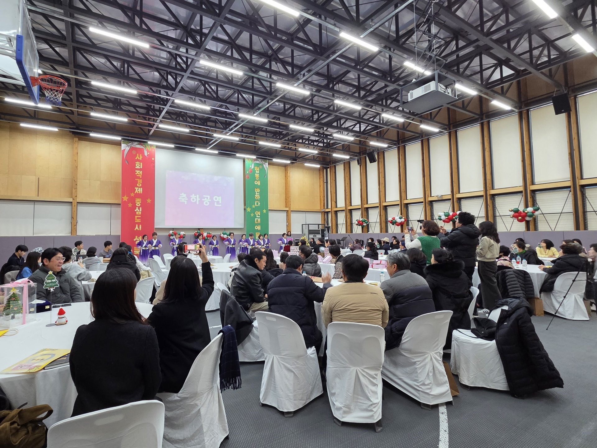 이어진 ‘고려대학교 버스킹 동아리’의 공연에 현장은 즐거운 연말 분위기로 채워졌습니다. 지역 대학 청년들의 젊은 에너지에 관객들은 흐뭇한 표정으로 박수를 보내며 적극적으로 호응했습니다.