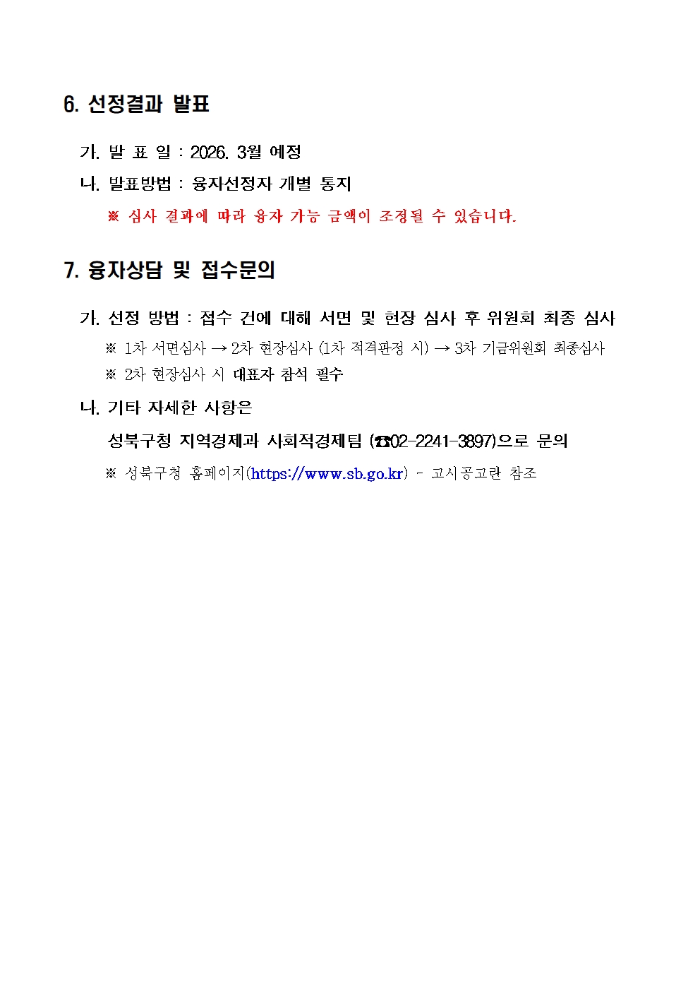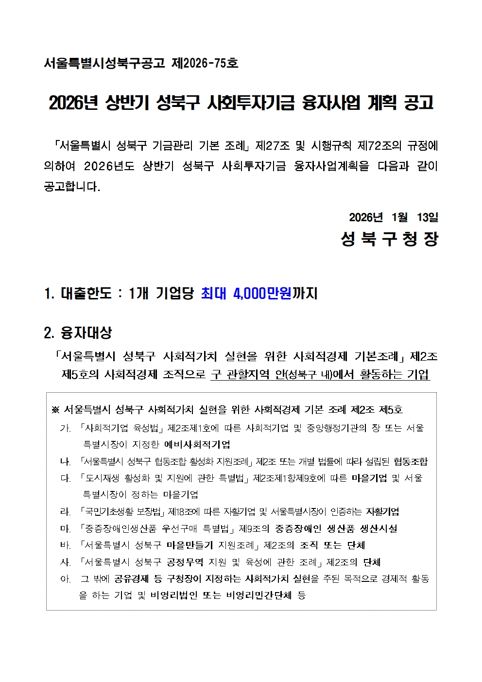 [안내] 2026 상반기 사회투자기금 융자사업 계획 공고