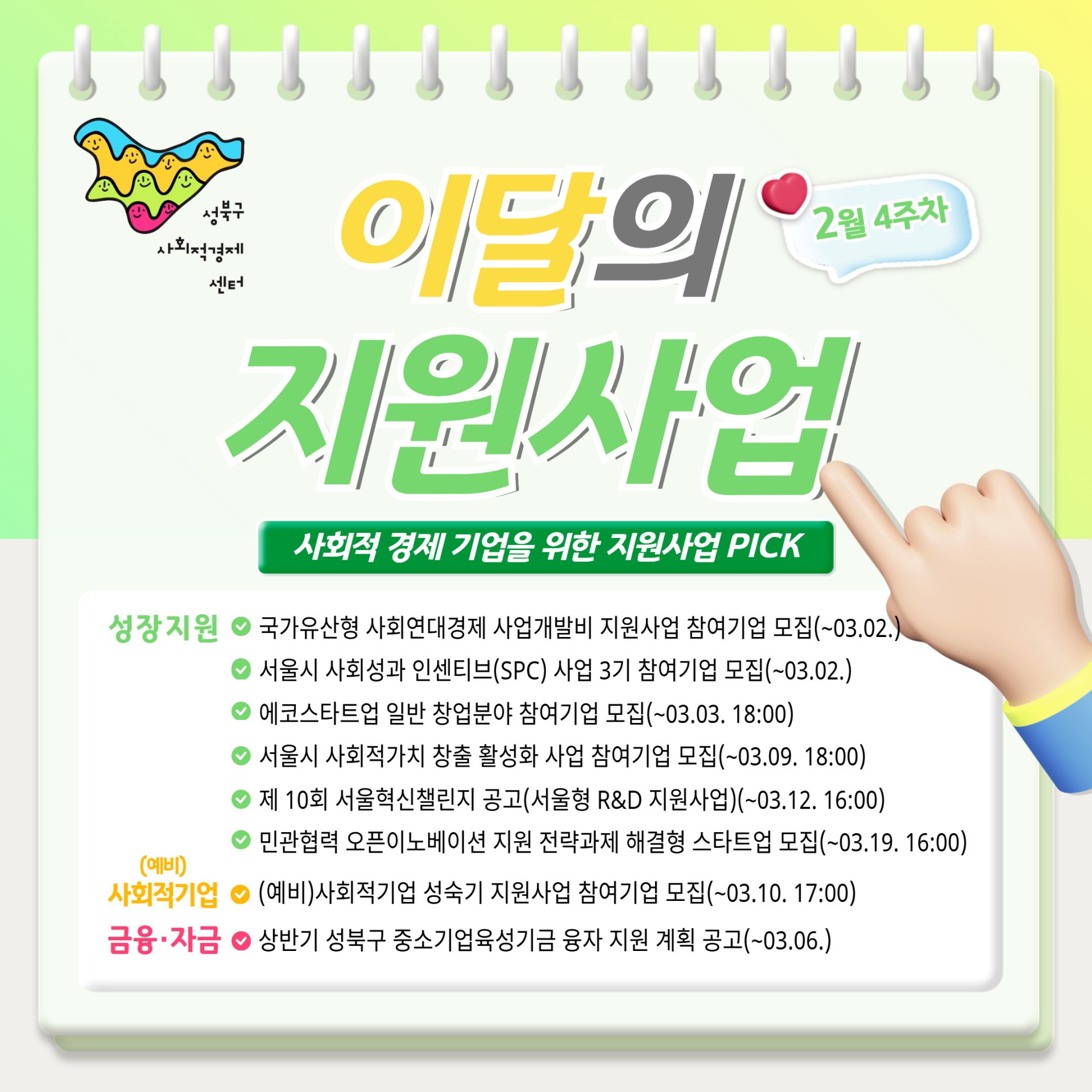 성사경이 추천해드리는 이달의 지원사업 PICK!